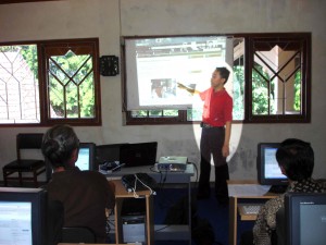 Pelatihan diberikan langsung oleh pemrogram layanan Blog Dosen yaitu Pak Chandra Aan Setiawan, A.Md., salah satu staf UPT PUSTIKA, yang dibantu oleh P Rokhim, B Gunarti, dan B Esti.