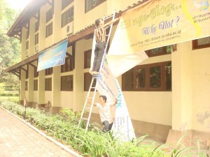 Pemasangan spanduk sosialisasi E-journal